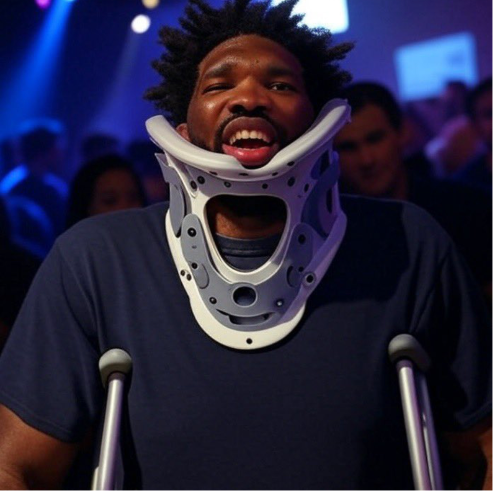 还有超损的网友说,乔治排队该不会是在等同样养伤中的恩比德吧?